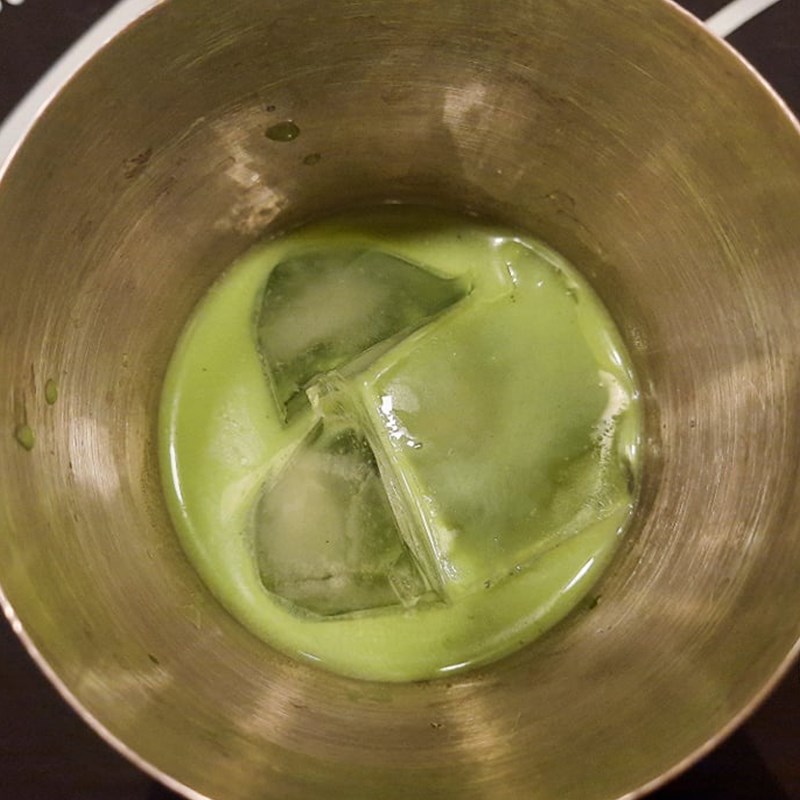 Thêm phần matcha đã hòa tan vào, đậy nắp và lắc khoảng 15 – 20 giây.
