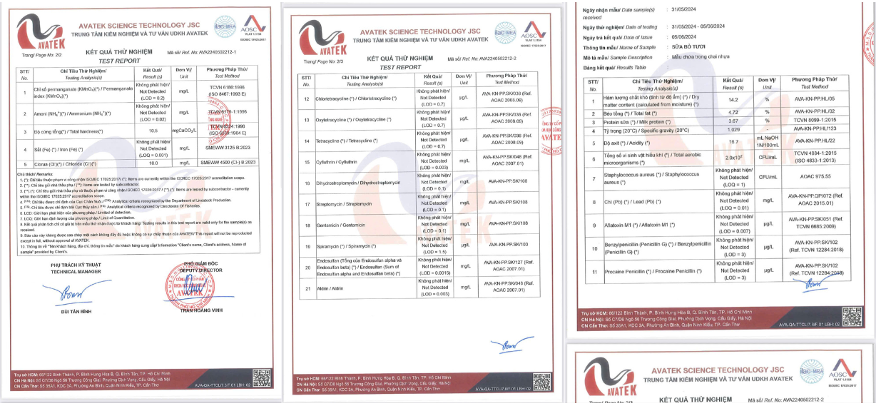 Giấy tờ đầy đủ – kèm theo giấy kiểm tra chất lượng và thử nghiệm vi sinh từ cơ quan chức năng, có dấu đỏ và thông tin rõ ràng