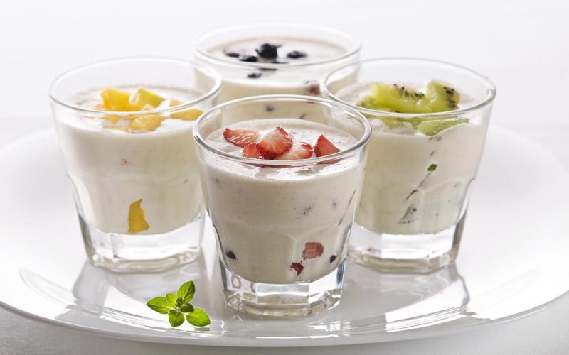 Lassi: Đồ uống giải khát phổ biến làm từ sữa chua (dahi) xay nhuyễn với nước, đường (hoặc muối), có thể thêm trái cây như xoài. Sữa chua lên men từ sữa bò là nguyên liệu cơ bản.